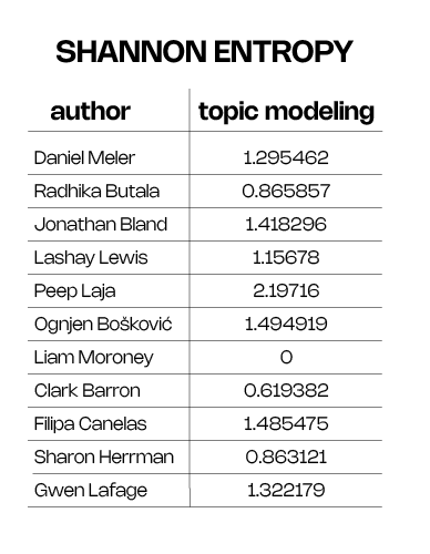 By analyzing entropy, we can go beyond just knowing what authors talk about and start understanding how varied their messaging truly is.